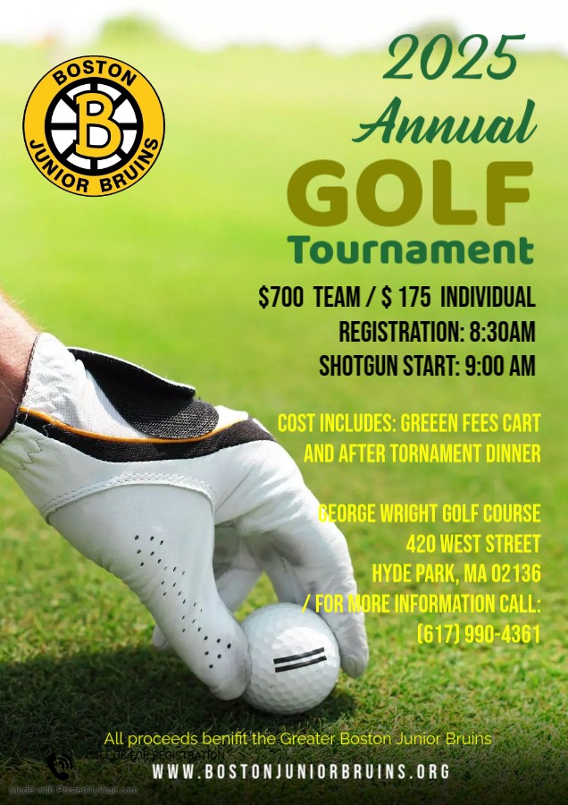 Greater Boston Junior Bruins will be hosting its Annual Paul McLaughlin Memorial Golf Tournament on Monday, October 6, 2025, at the George Wright Golf Course, Hyde Park, MA. We will kick off with 9:00AM Shot Gun with lunch and prizes to follow.